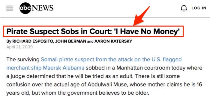In fact that is what the arrested pirate did during the hearing in US court.
