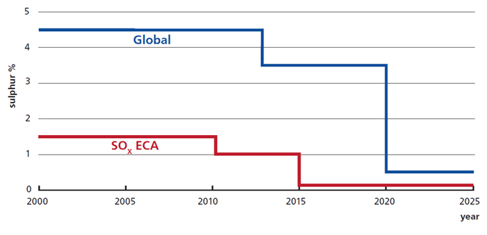 Since 2005, IMO has been working on to gradually reduce the SOx emission from the ships.