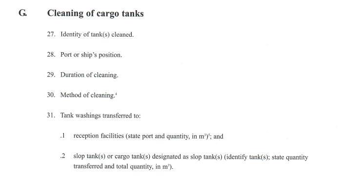 Another thing is the duration entered in G-29 which is the total duration of cleaning of the mentioned tanks.