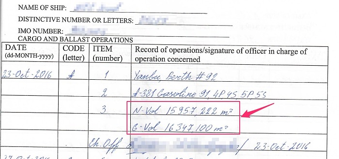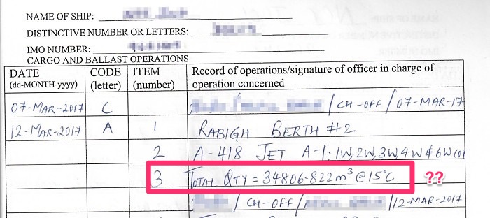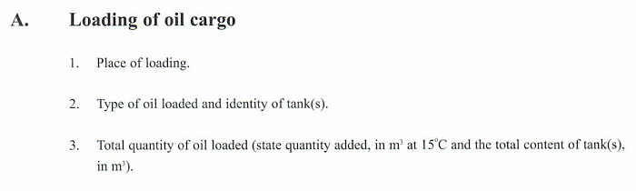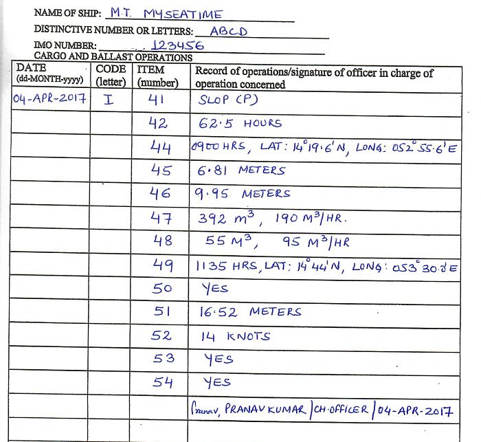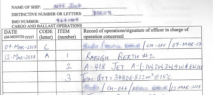 This is most easy entry in the oil record book. The columns that need to be entered are