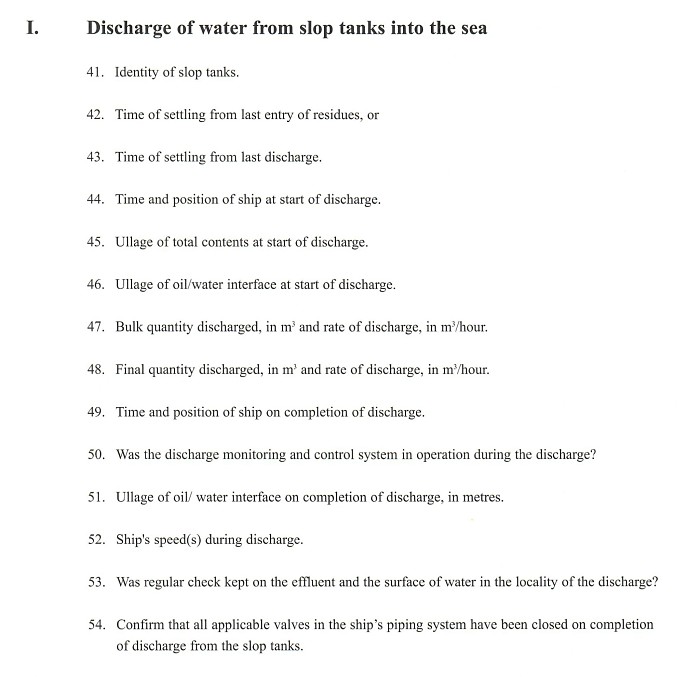 4. Discharge of water from slop tank into the sea