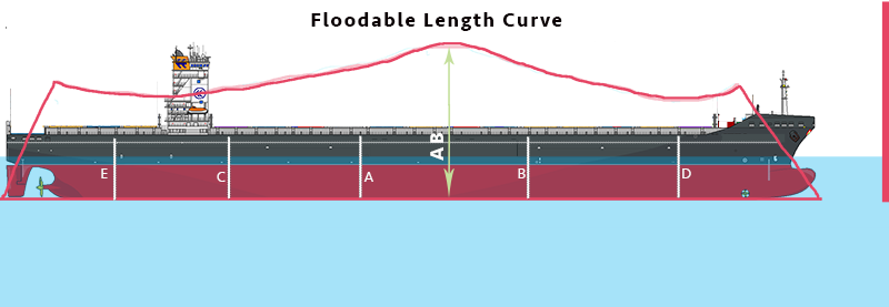 Floodable length curve represents the maximum floodable length of the ship along the ship’s length. This curve is obtained by vertically plotting the floodable length along the ship’s length.