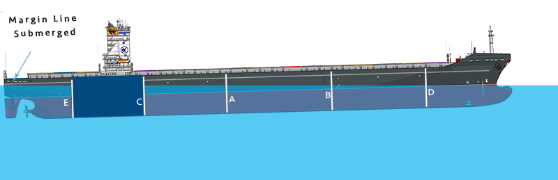 The length of this compartment (Length AB) need to such that if this compartment is flooded, the ship will sink to a point where margin line is just submerged.
