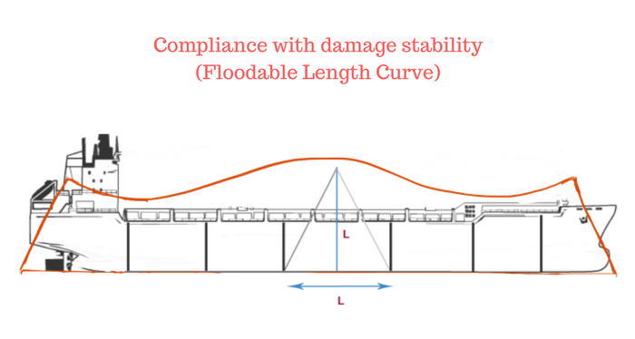 If this length is below the floodable length curve, this compartment complies with the damage stability requirements of one compartment standard.