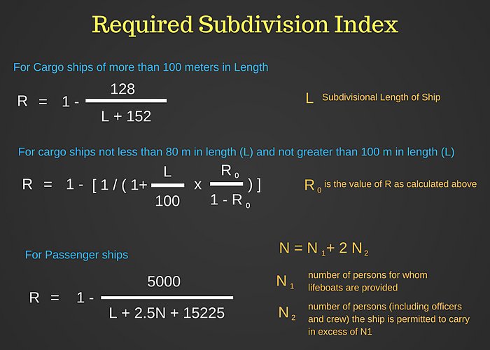 SOLAS chapter II-1, Reg 7 gives the formula to calculate the required subdivision index for a ship.