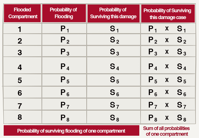 This approach uses the concept of probability to ensure that ships can survive damage to its compartment(s).