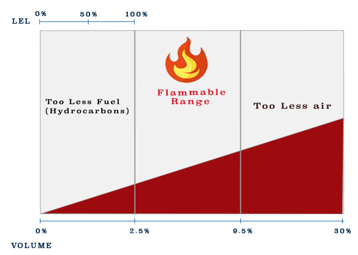 Returning back to our question, we now understand that when we say 100% LEL, we have just touched the lower explosive limit. Anything below 100% LEL, we are not in the flammable limit.