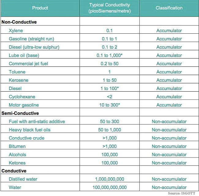 ISGOTT has assigned a number to define static accumulator cargoes. As per ISGOTT, these are the cargoes that have conductivity of less than 50 picoSiemens/metre (pS/m).