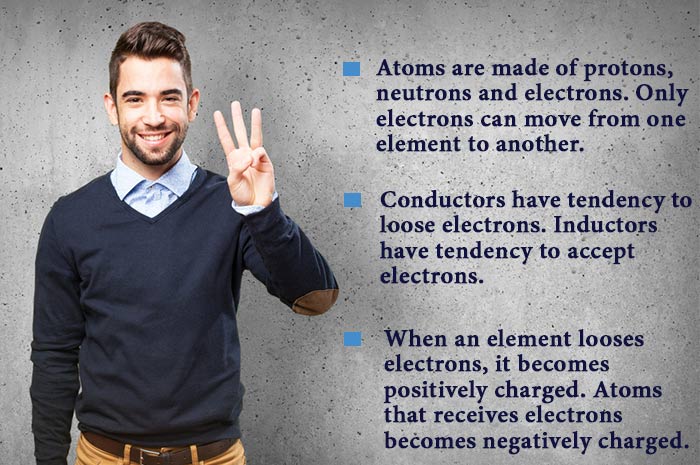 All the matters in this world are made of atoms. Atoms consists of three things. Negatively charged electron, positively charged protons and neutral neutrons.